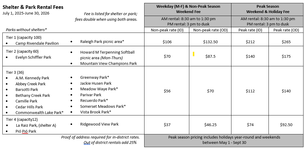 If both time blocks are available, the shelter can be reserved for both blocks (all day). If the entire block(s) is not needed, there is no fee reduction for time not used. Rental time cannot exceed time established on the reservation form.