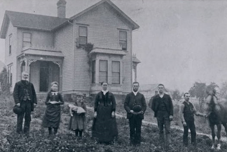 Elizabeth Constable Young w/JQA & five of their eight children who survived infancy in front of the new house (built 1874; now lost) north of Cornell Rd. west of Cedar Mill Creek, c. 1885