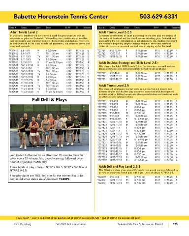 TC27522 10/14-11/4 T 10-11:30 am $110 $137.50 4 doubles strategies and skill development using live ball point play.