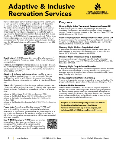 2 www.thprd.org Fall 2025 Activities Guide Tualatin Hills Park & Recreation District