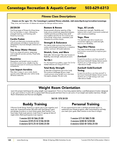 Classes are for ages 14+. For Conestoga's updated fitness schedule, visit www.thprd.org/recreation/conestoga