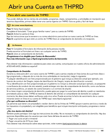 www.thprd.org Guía de Actividades de Invierno y Primavera 2026 Tualatin Hills Park & Recreation District 165