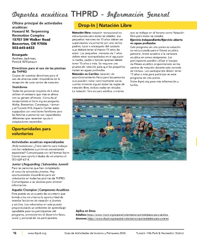 16 www.thprd.org Guía de Actividades de Invierno y Primavera 2026 Tualatin Hills Park & Recreation District