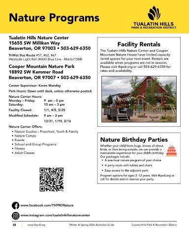 58 www.thprd.org Winter & Spring 2026 Activities Guide Tualatin Hills Park & Recreation District